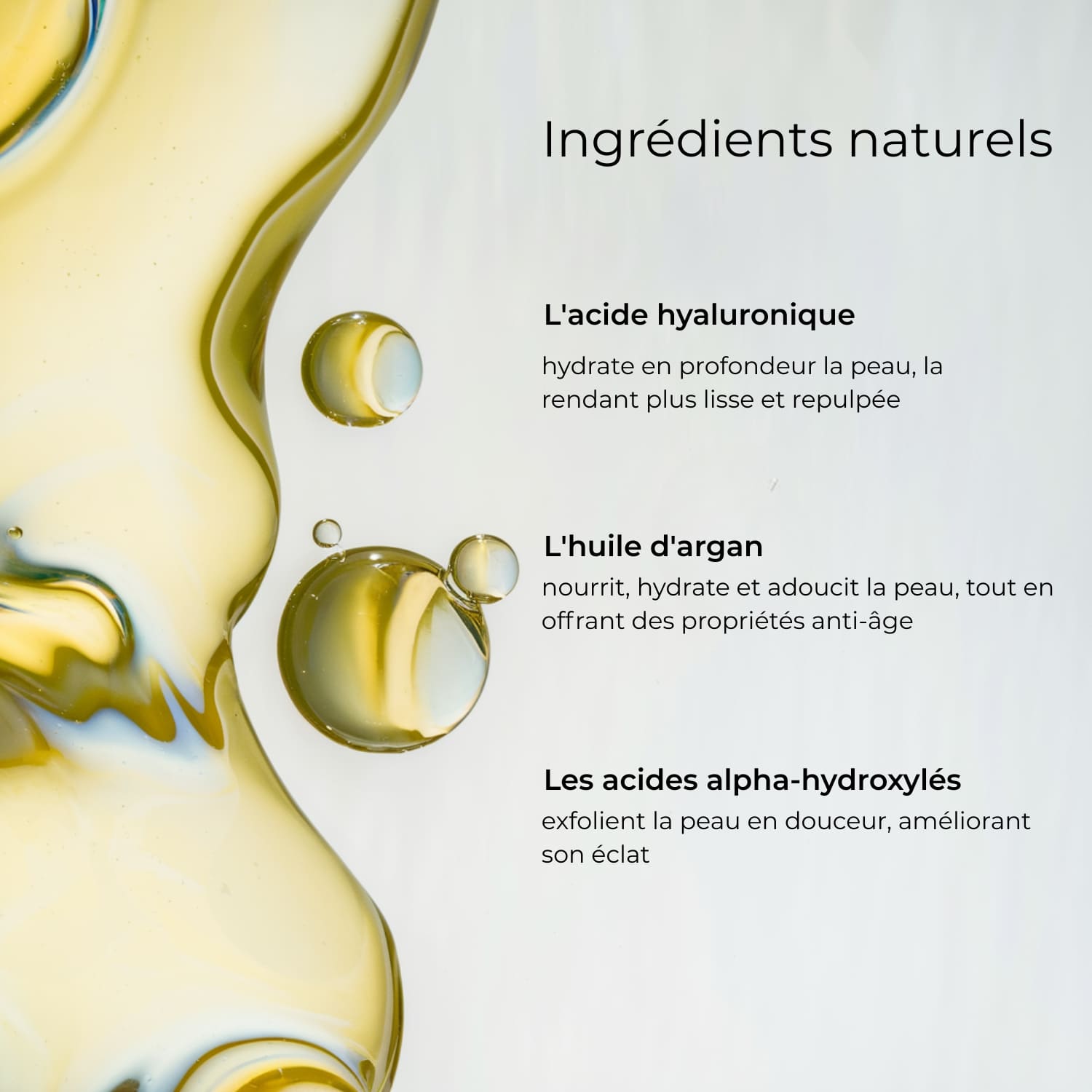 Le pouvoir de l'acide hyaluronique hydrate votre peau en profondeur, la repulpant de l'intérieur pour une sensation de douceur au toucher et une apparence éclatante.